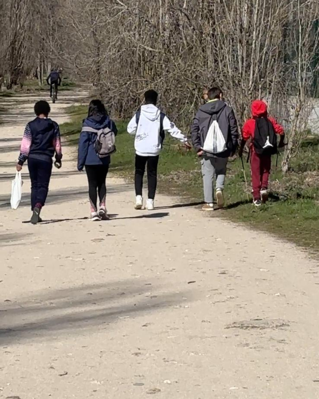Nos asomamos a visitar el Palacio del municipio y seguimos después, por la ruta del ahora muy caudaloso río, donde los chicos y chicas disfrutaron de lo lindo… Algunos incluso se atrevieron a remojarse los pies -y otros hasta de forma temeraria un poco más- en ese agua procedente del deshielo de las nieves de Guadarrama, además de por supuesto desfogarse corriendo y jugando sin parar bajo el cálido y maravilloso día que nos acompañó.
